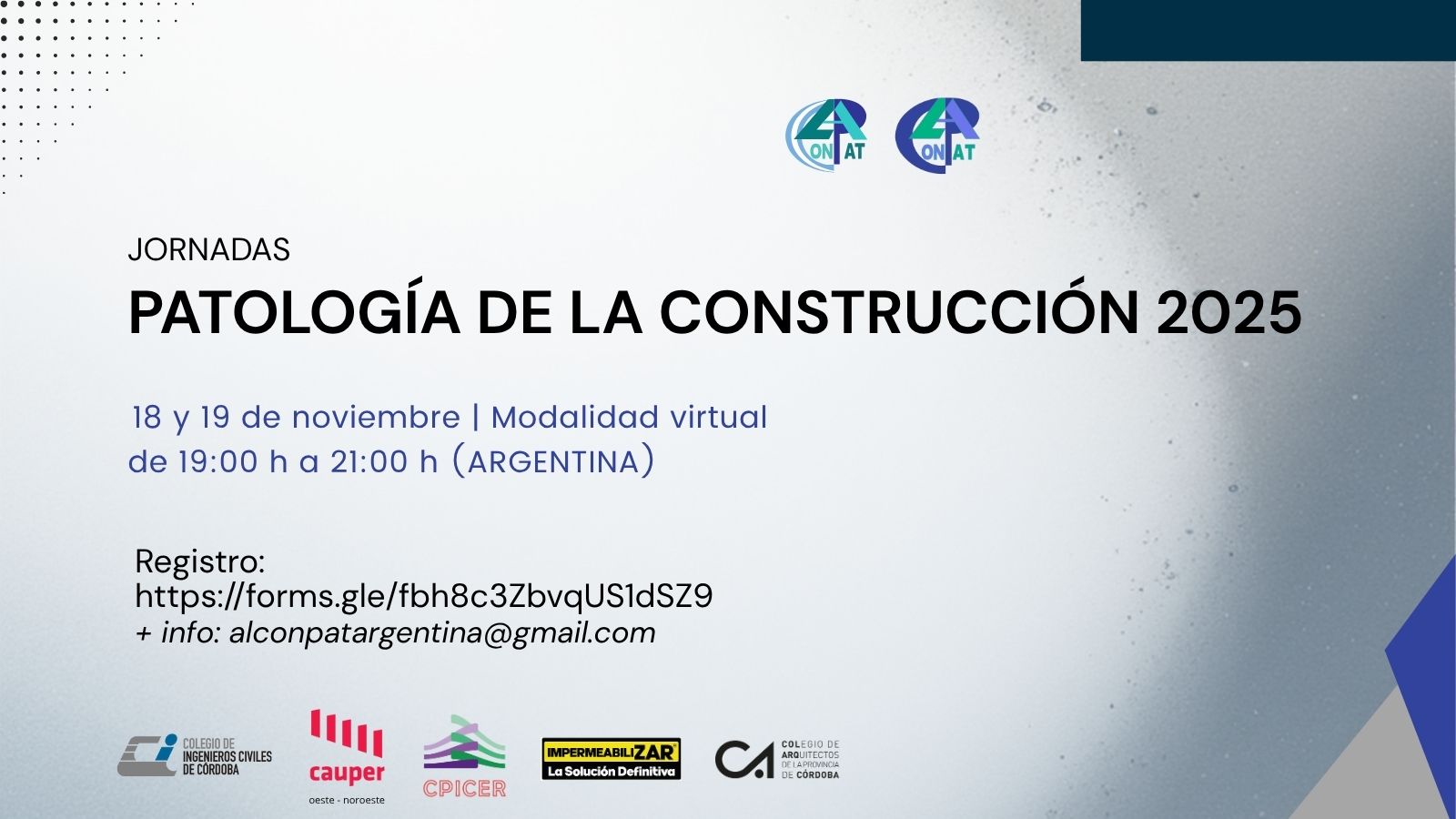 Una oportunidad para actualizarte en técnicas, materiales y soluciones innovadoras en el diagnóstico y rehabilitación de estructuras.